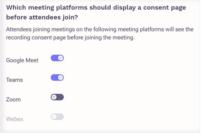 - Admins can configure this to be enabled by provider. For instance, you may wish to have consent enabled for Teems but not for Zoom.